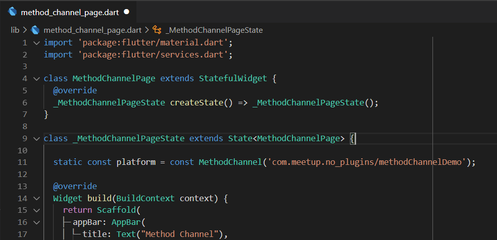 platform이라는 static한 MethodChannel 객체를 만들었다.