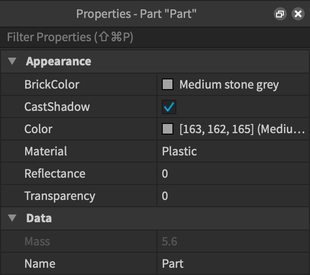 Parts는 게임의 기본 빌딩 블록입니다. Parts를 통해 다양한 플랫폼들을 만들 수 있습니다.