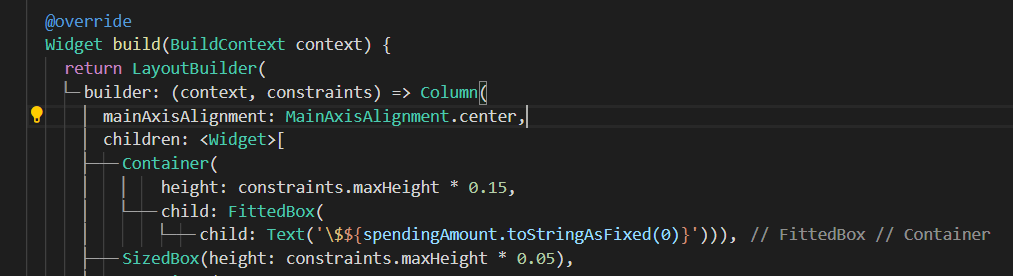 LayoutBuilder는 Column을 감쌌습니다 > Column에게 적용되는 Constraints(사이즈 관련 것들)을 이제 알 수 있습니다.