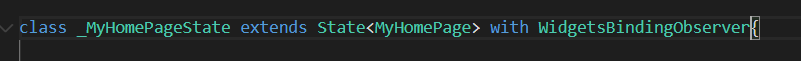 1. 먼저 WidgetsBindingObserver mixin을 원하는 위젯에 추가해준다.