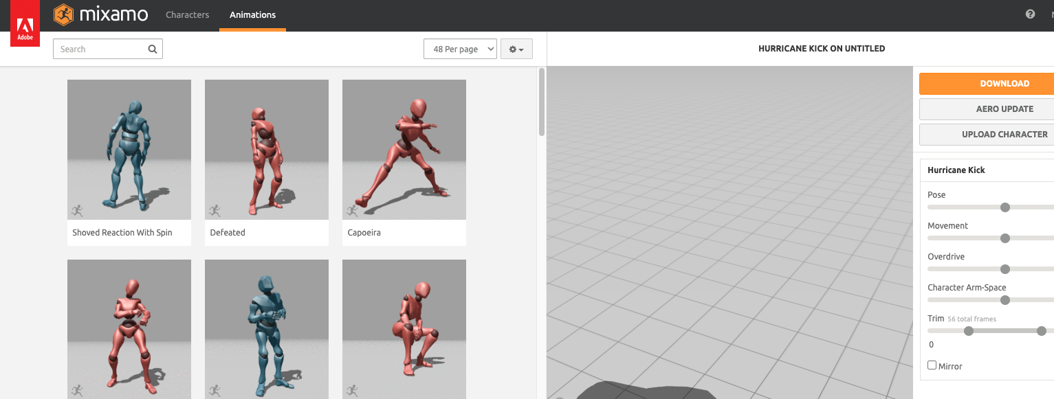 애니메이션을 무료로 제공하는 Mixamo의 애니메이션을 roblox에 활용하는 방법을 정리하고자 한다.