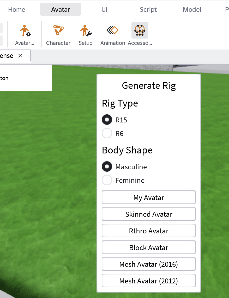 : "Generate Rig" 창에서 R15로 된 캐릭터를 만든다. (나는 Masculine, My Avatar를 했다)
